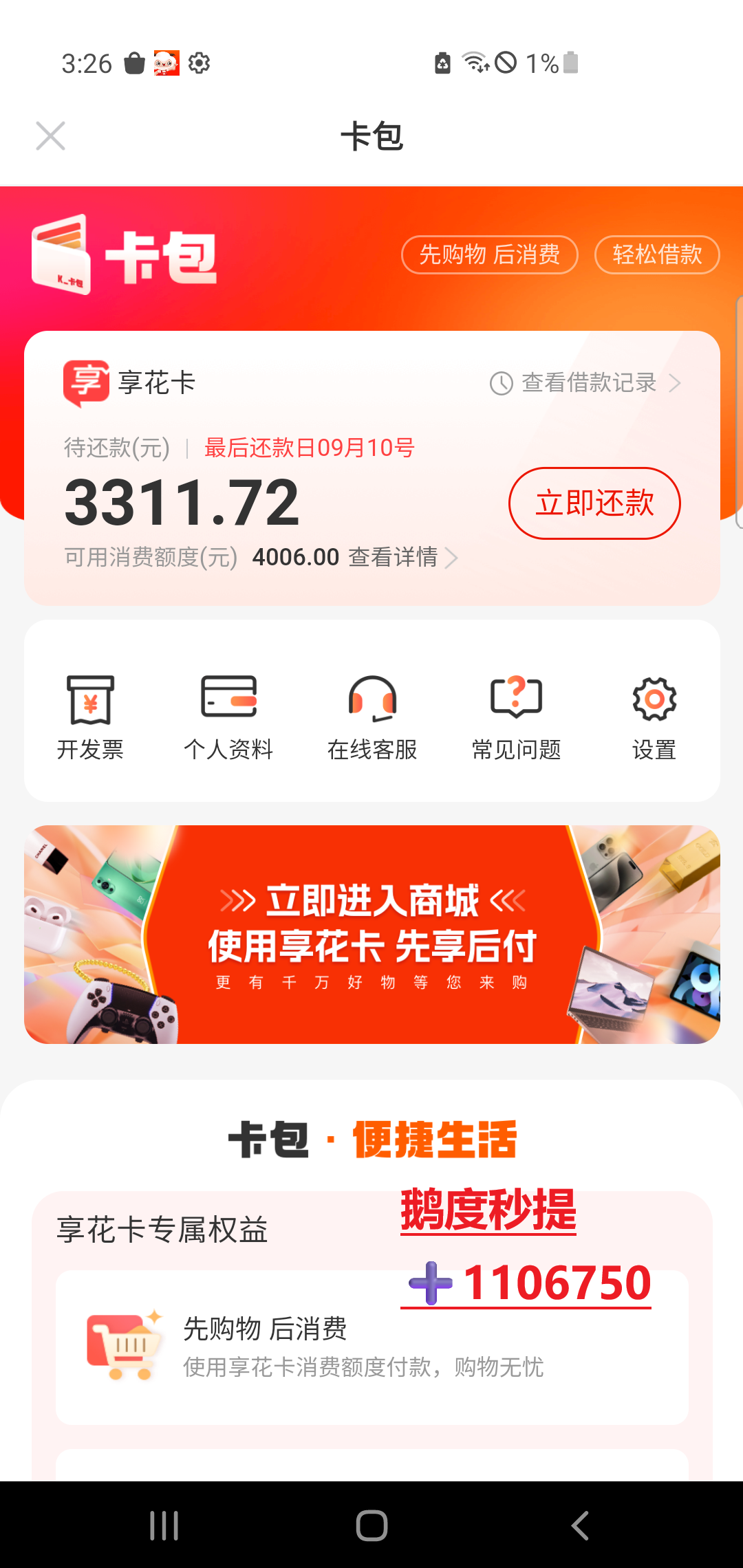 2、商家会根据你需要做的额度大小,安排好合适的产品,比如你额度是3万,但是你打算提现1万出来,那么就给你搭配1万左右的商品金额的去下单,用便荔卡包消费额度进行支付!