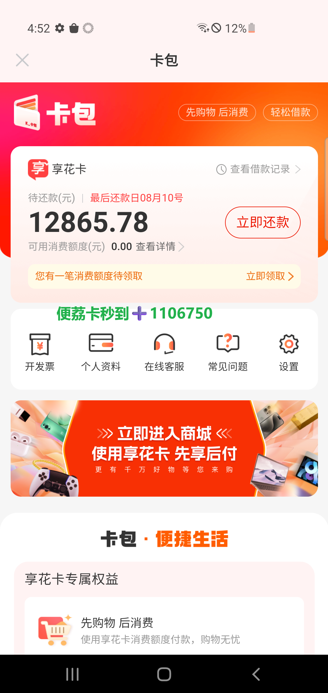便荔卡包额度取现